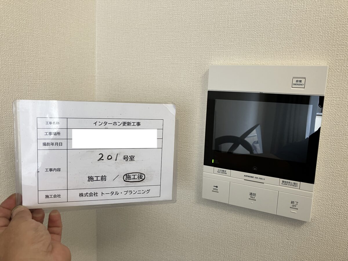 東京都杉並区のマンションにて、インターホンリニューアル工事及び部屋内の感知器交換を行いました。